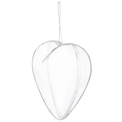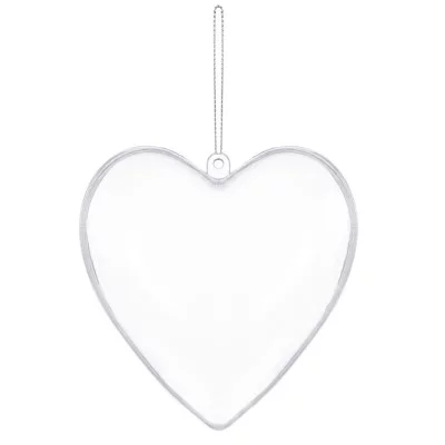 Průhledná akrylová baňka ve tvaru srdce o velikosti 12 cm je ideální polotovar k dozdobení a kreativnímu tvoření. Rozkládací provedení umožňuje snadné plnění i dekorování vnitřku baňky.