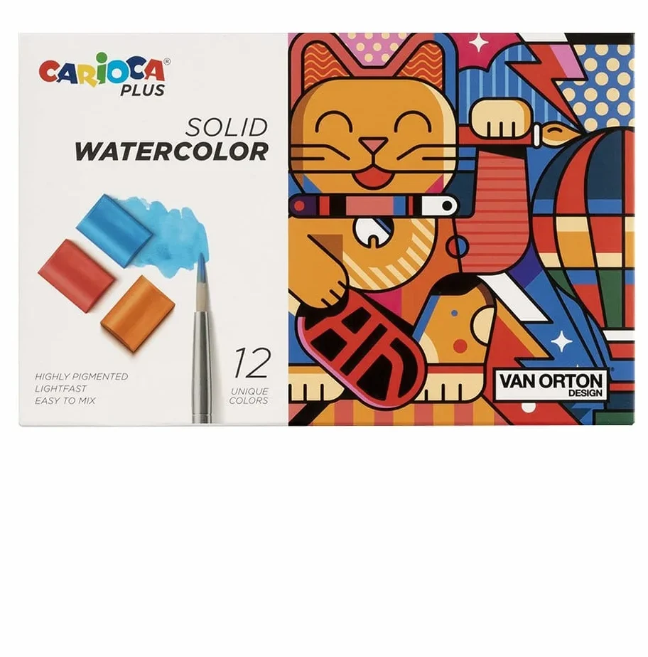 Barvy se snadno aktivují vodou, dobře se nanášejí a umožňují práci s různou intenzitou tónů. Jsou vhodné jak pro začátečníky, tak pro pokročilejší malé i velké umělce. Praktické balení je ideální na cesty i do školní aktovky. Krásné designové zpracování od dua Van Orton Design.