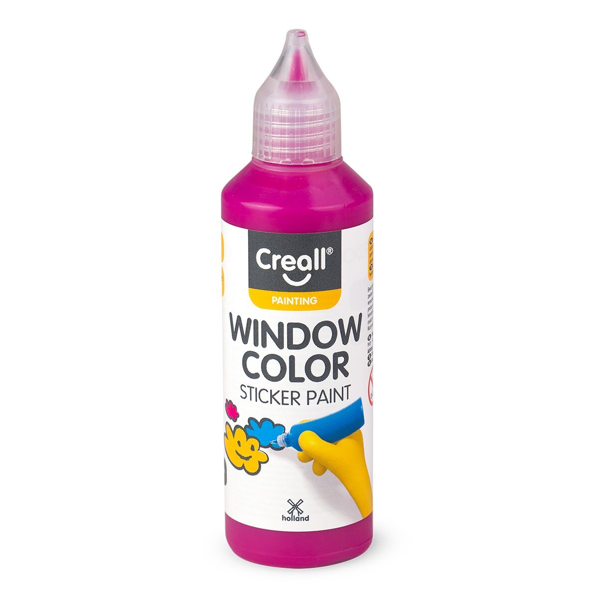 Kvalitní okenní barva v odstínu syté růžové barvy, ideální pro tvorbu dekorací na sklo, zrcadla i další hladké neporézní povrchy. Barva se snadno aplikuje přímo z lahvičky, dobře drží tvar a po zaschnutí vytváří pružný, lehce snímatelný motiv.