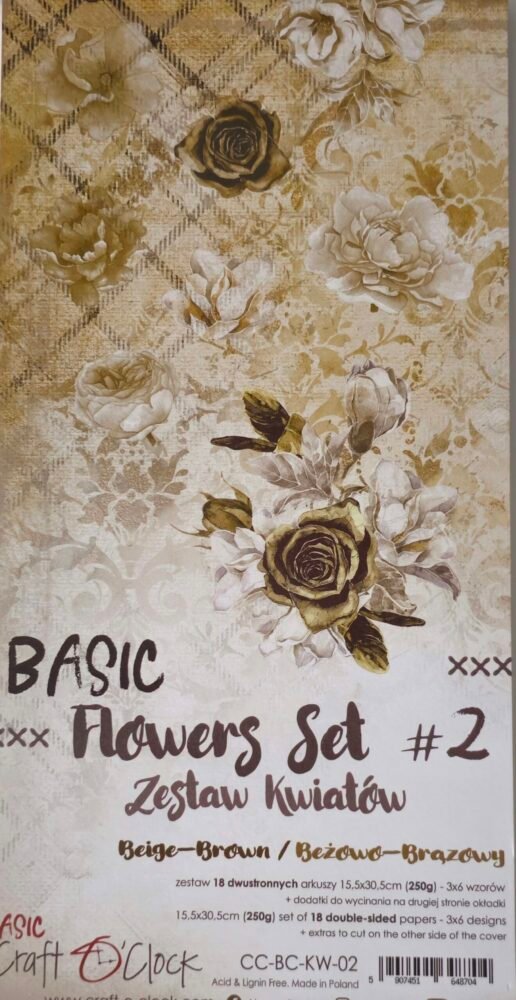Blok kreativních papírů mají sametově hladký matný povrch příjemný pro oko i na dotek. Obsahuje 18 oboustranných listů v podlouhlém formátu 30,5 x 15,5 cm, s motivy květů a kvítků v béžovém odstínu.