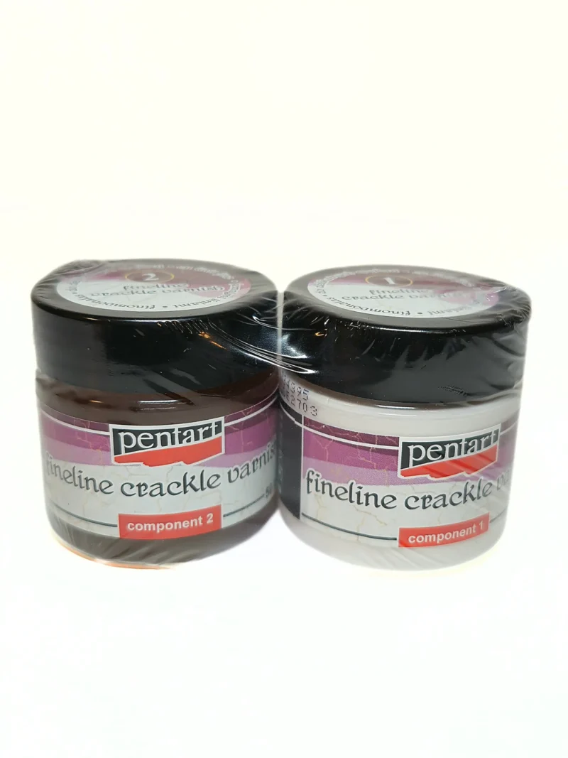 Dvousložkový krakelovací lak pro popraskaný, stárnoucí a vintage vzhled. Tento speciální lak funguje ve dvou krocích a vytváří přirozené prasklinky, které připomínají starou, časem narušenou barvu nebo lak.