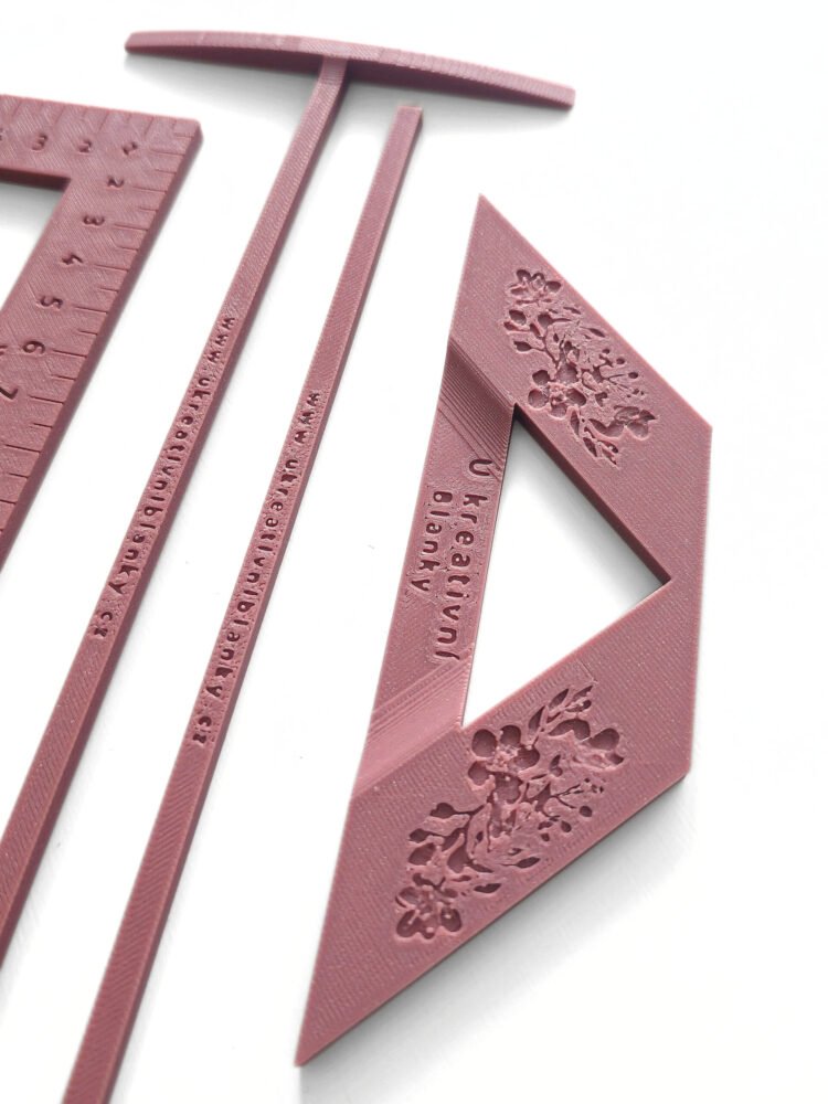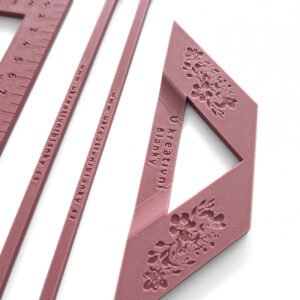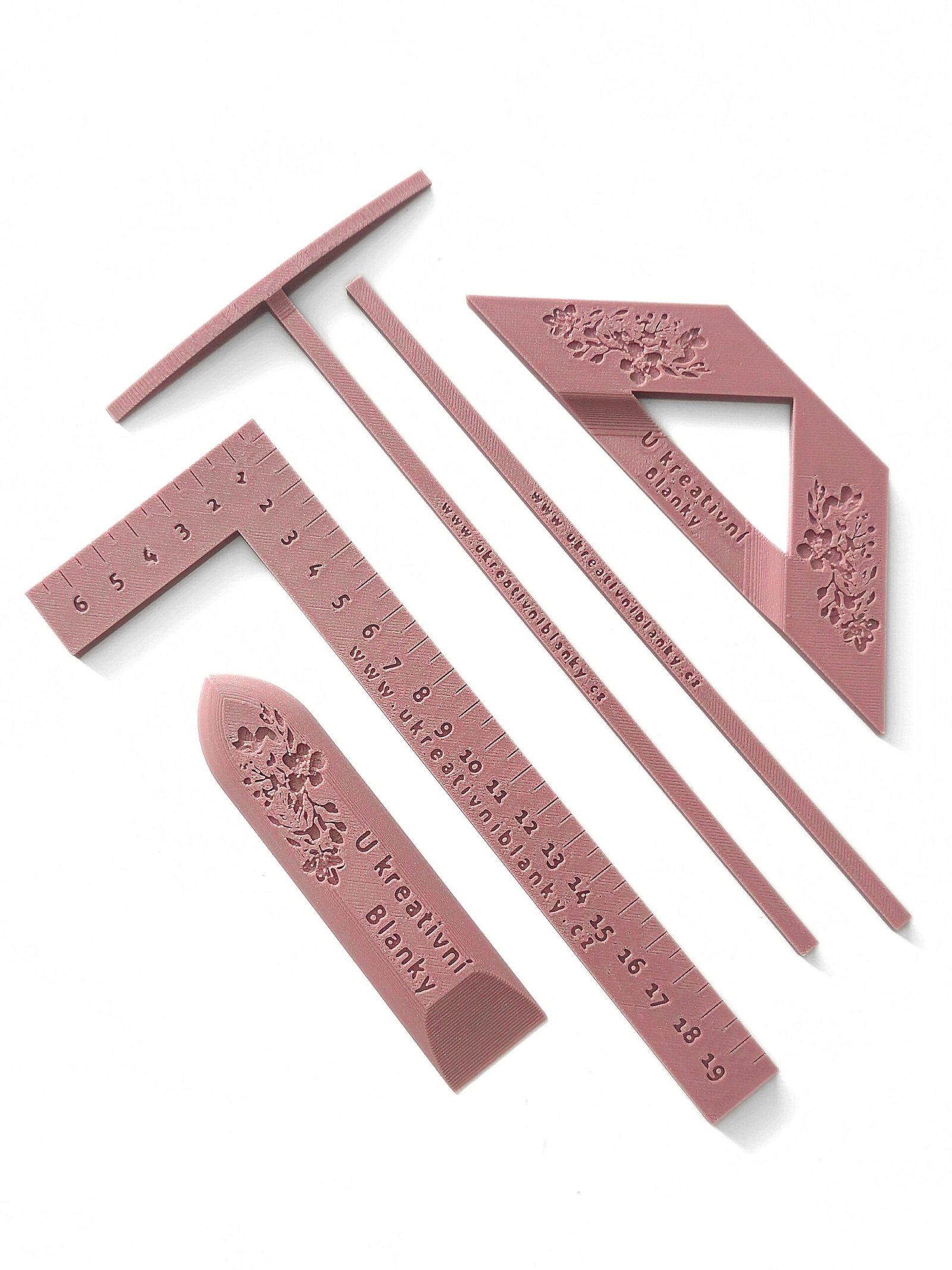- Tyčka k úhelníkům / ohýbání stránek – usnadňuje práci při tvarování a fixaci papíru