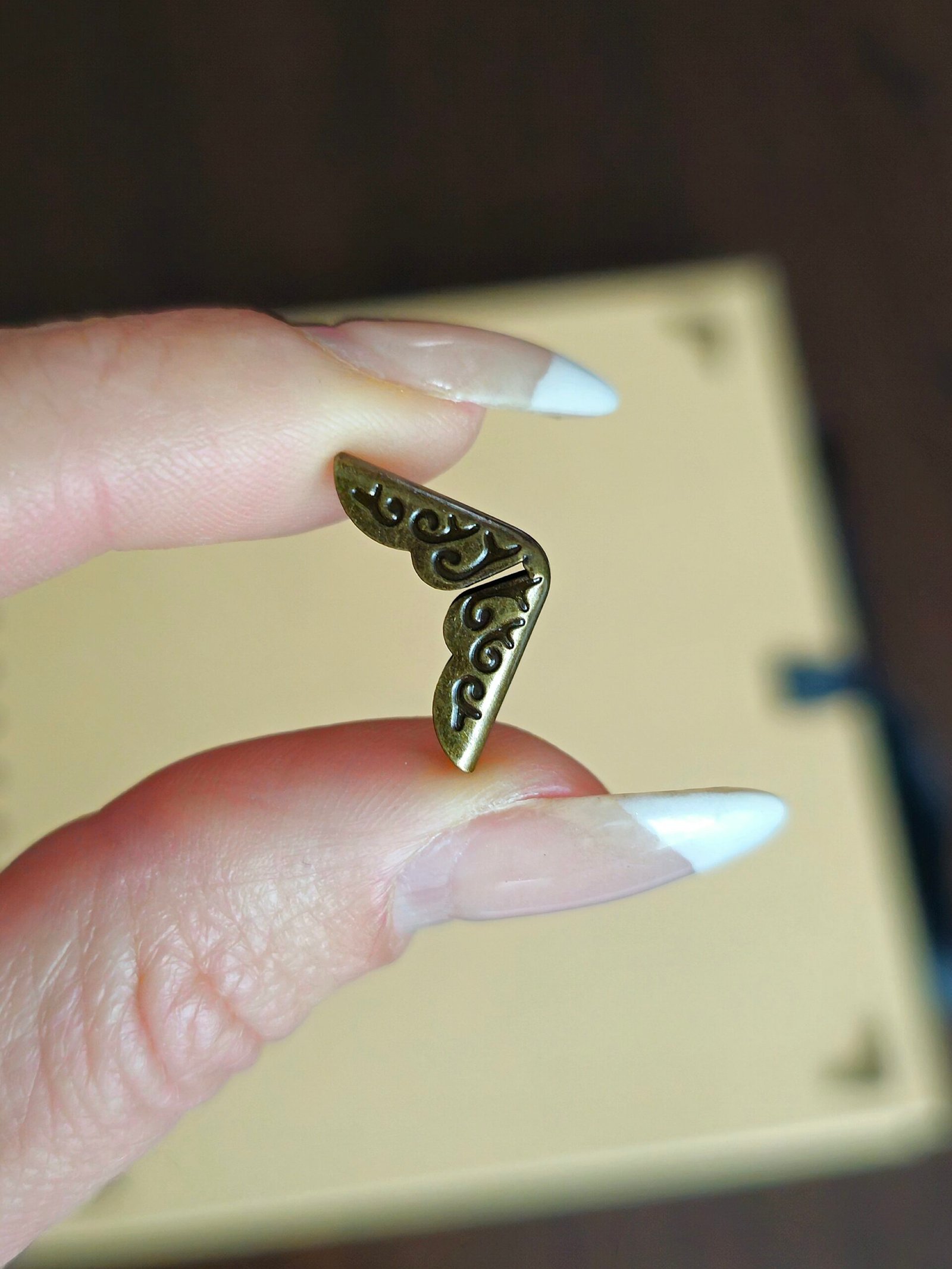 Dekorativní kovový růžek je elegantním doplňkem pro scrapbooking, výrobu alb, deníků, přání i dalších kreativních projektů. Slouží nejen jako ozdobný prvek, ale také jako ochrana rohů desek.
