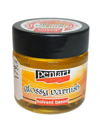 Lesklý lak Pentart na bázi rozpouštědla je vhodný jako vrchní lak pro běžné zakončení dekorací i jako tmel pro krakelovací lak nebo jako závěrečná vrstva pro metalické plátky a vločky, které krásně uzavře a chrání. Spolehlivý ochranný lak pro vnitřní i venkovní použití.
