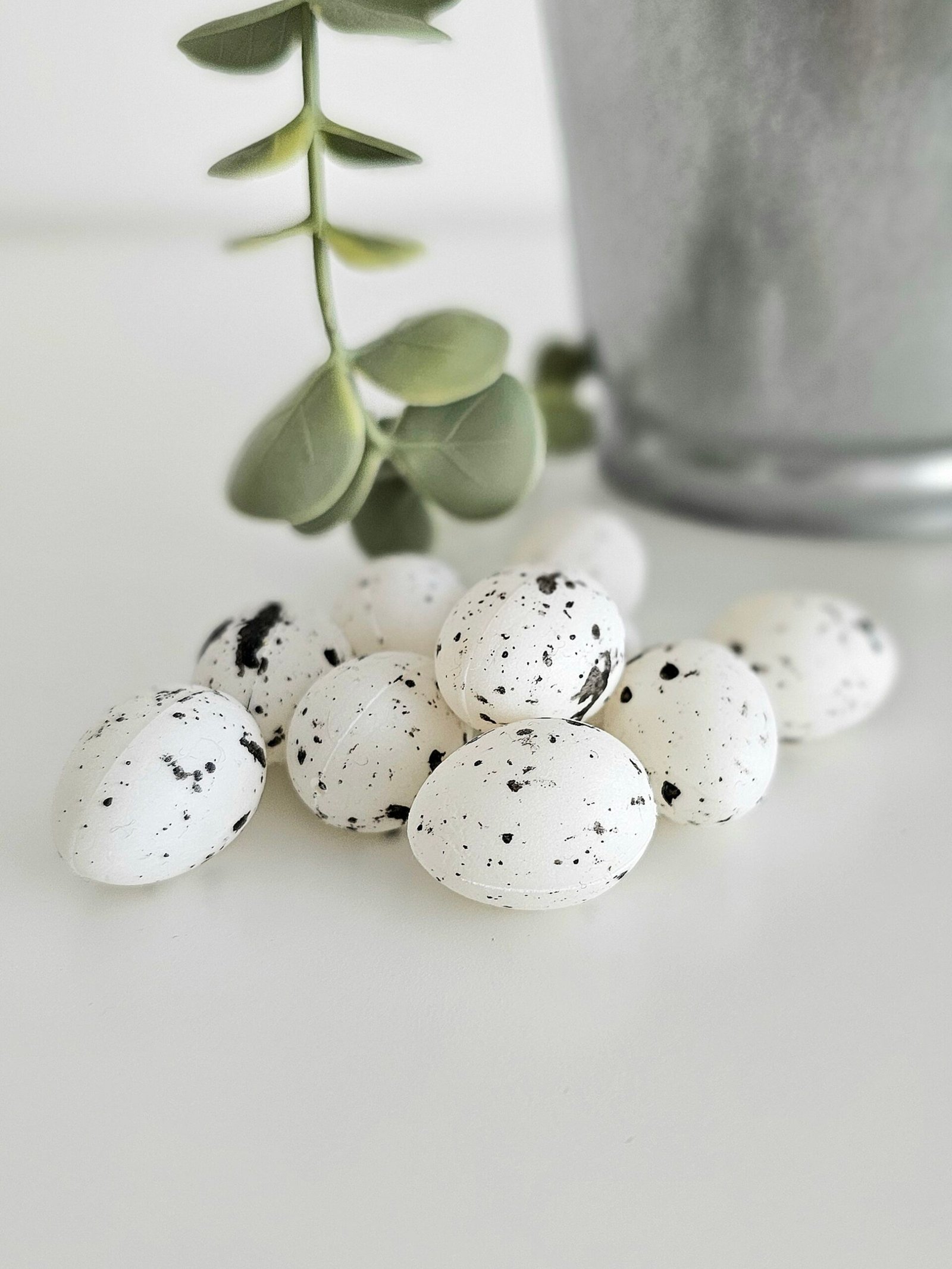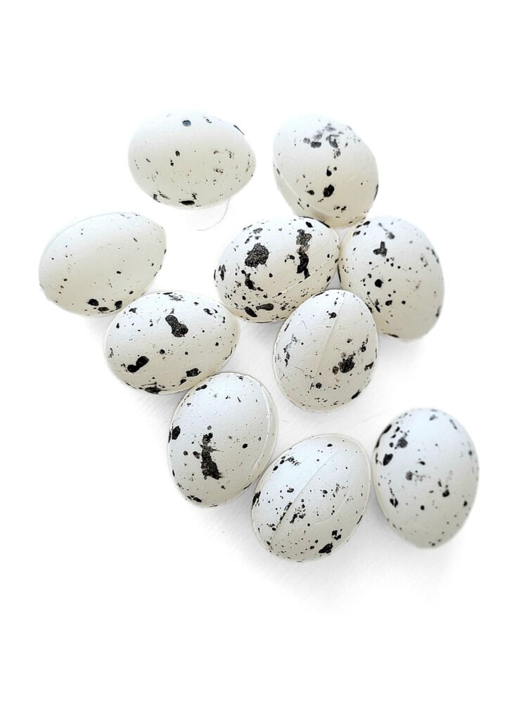 Roztomilá mini vajíčka, inspirovaná křepelčími, která přinesou do vašeho domova jarní atmosféru. Každé vejce má přibližně 25 × 18 mm, takže se skvěle hodí do velikonočních dekorací, aranžmá z větviček nebo kreativních DIY projektů. Set obsahuje 10 kusů, ideální pro ozdobení stolů, košíčků a jiných dekorací.