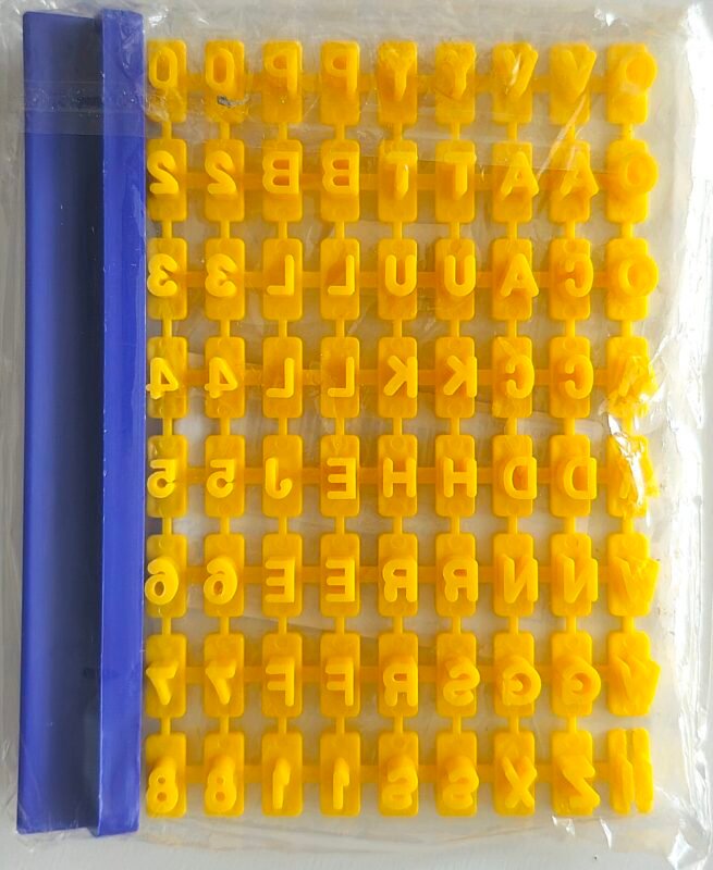 Praktická sada písmen určená pro snadné vytváření nápisů z samotvrdnoucí hmoty, modelovací hmoty nebo keramické hlíny. Jednotlivá písmenka lze jednoduše zasunout do přiložené lišty a vytvořit tak celé slovo či jméno, které následně vykrojíte jedním tahem. Výsledkem jsou čisté, čitelné a rovnoměrné tvary.