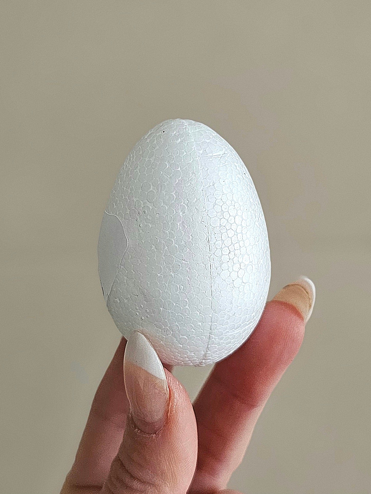 Bílé vajíčko z polystyrenu o výšce 6 cm je lehký a téměř nerozbitný dekorační základ určený pro kreativní tvoření. Díky hladkému povrchu je vhodné pro lepení různými materiály a snadno se s ním pracuje i při detailním zdobení. Nízká hmotnost umožňuje zavěšení hotové dekorace bez zbytečného zatížení.