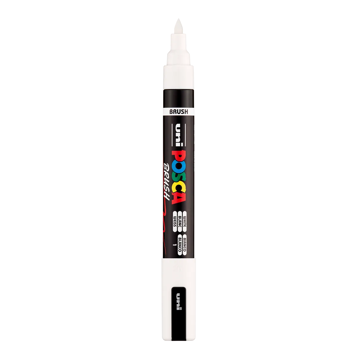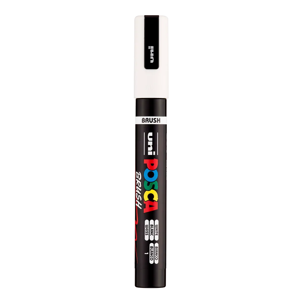Uni POSCA Brush PC-5BR – bílý akrylový popisovač se štětcovým hrotem