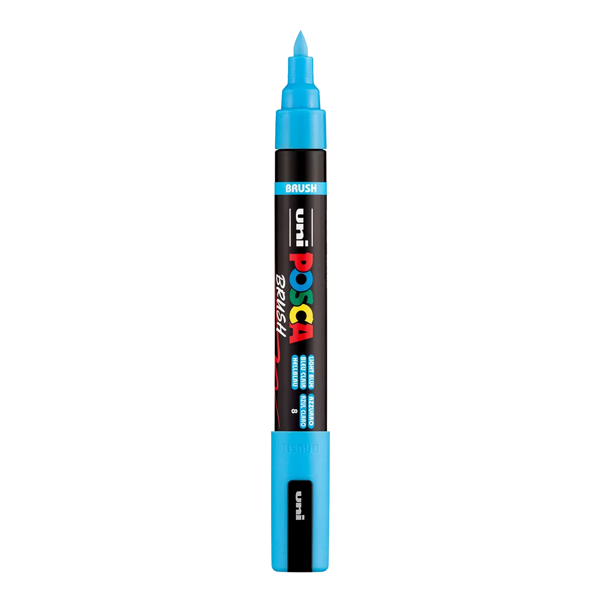 Uni POSCA Brush PC-5BR – světle modrý akrylový popisovač se štětcovým hrotem