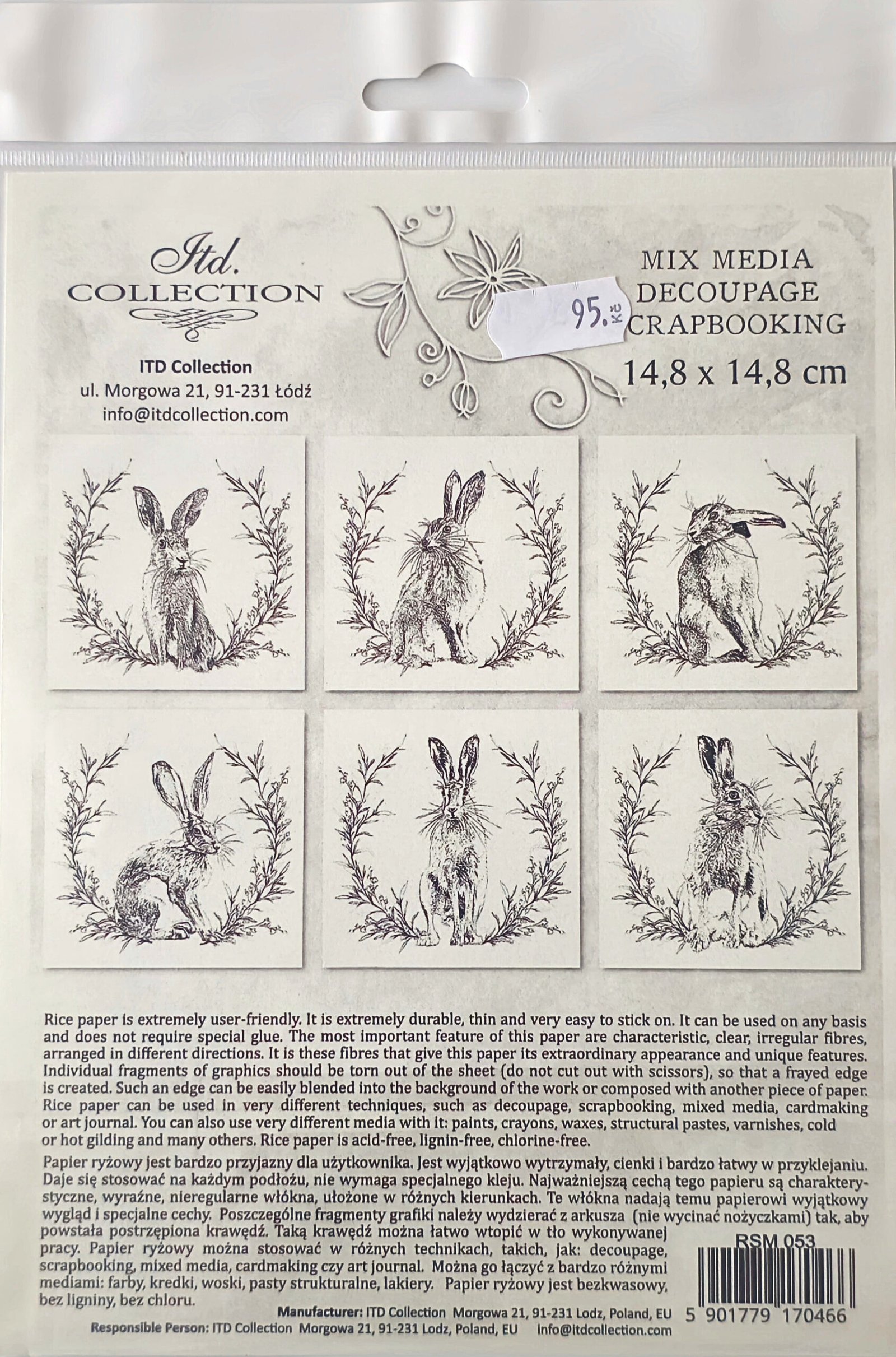 Sada dekorativních rýžových papírů s venkovským motivem králíka doplněným o rostlinnou snítku je určena pro kreativní techniky, jako jsou decoupage, scrapbooking a mixed media. Čtvercový formát 14,8 × 14,8 cm je praktický pro zdobení originálních dekorací i detailních kompozic. Balení obsahuje 6 kusů papírů s motivem v rustikálním stylu, který se dobře hodí do velikonočních nebo venkovských dekorací.