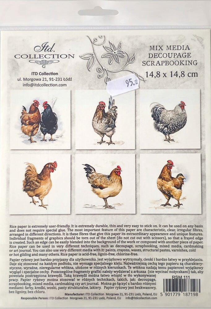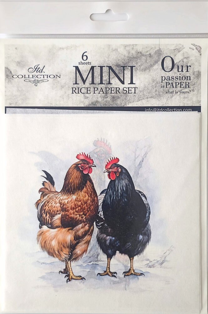 Rýžové papíry jsou ideální pro zdobení krabiček, táců, rámečků, velikonočních dekorací, přání nebo scrapbookových projektů. Motiv slepičky dodá dekoracím příjemnou venkovskou atmosféru a dobře se kombinuje s přírodními barvami, patinou nebo vintage prvky.