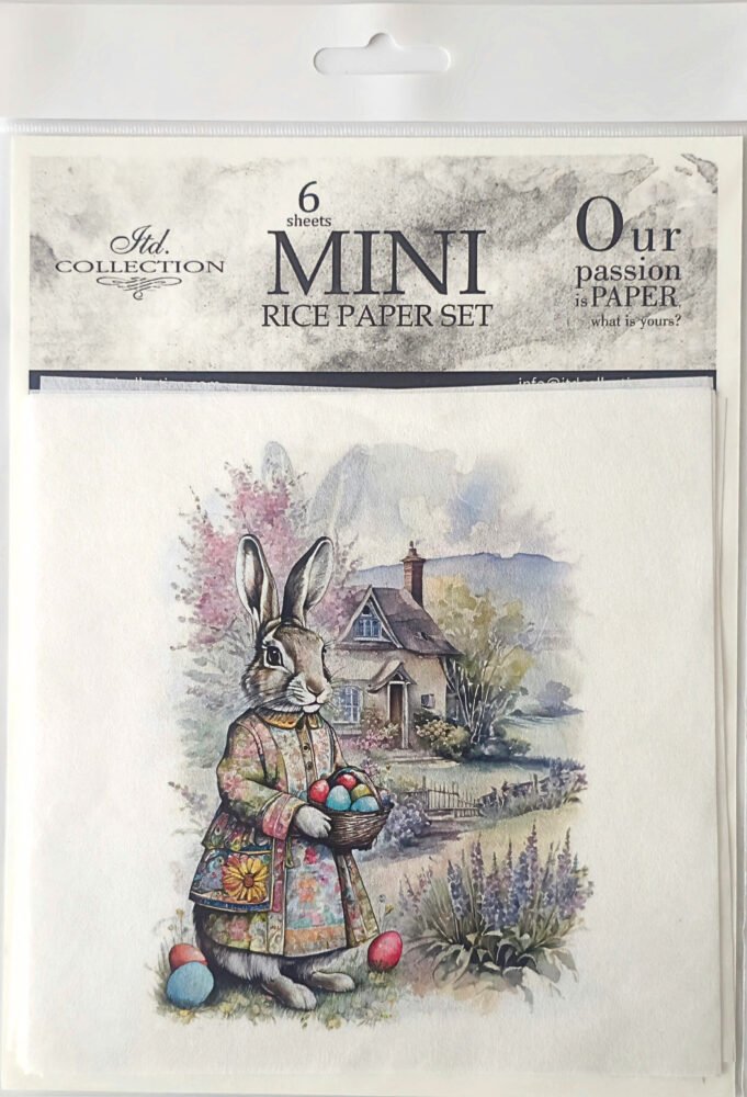 Dekorativní rýžové papíry velikonoční zajíčci s malovanými vajíčky pro různé kreativní techniky, zejména decoupage, scrapbooking a mixed media. Motiv inspirovaný venkovským prostředím se skvěle hodí pro velikonoční tvoření, jarní dekorace i projekty v rustikálním stylu. Balení obsahuje 6 listů o rozměru 14,8 × 14,8 cm.
