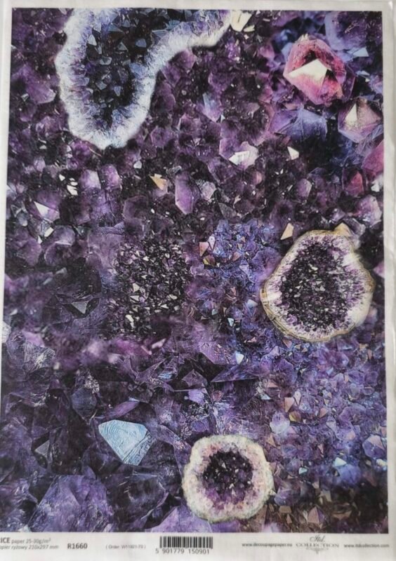 Vzhled papíru připomíná krystaly minerálu ametyst