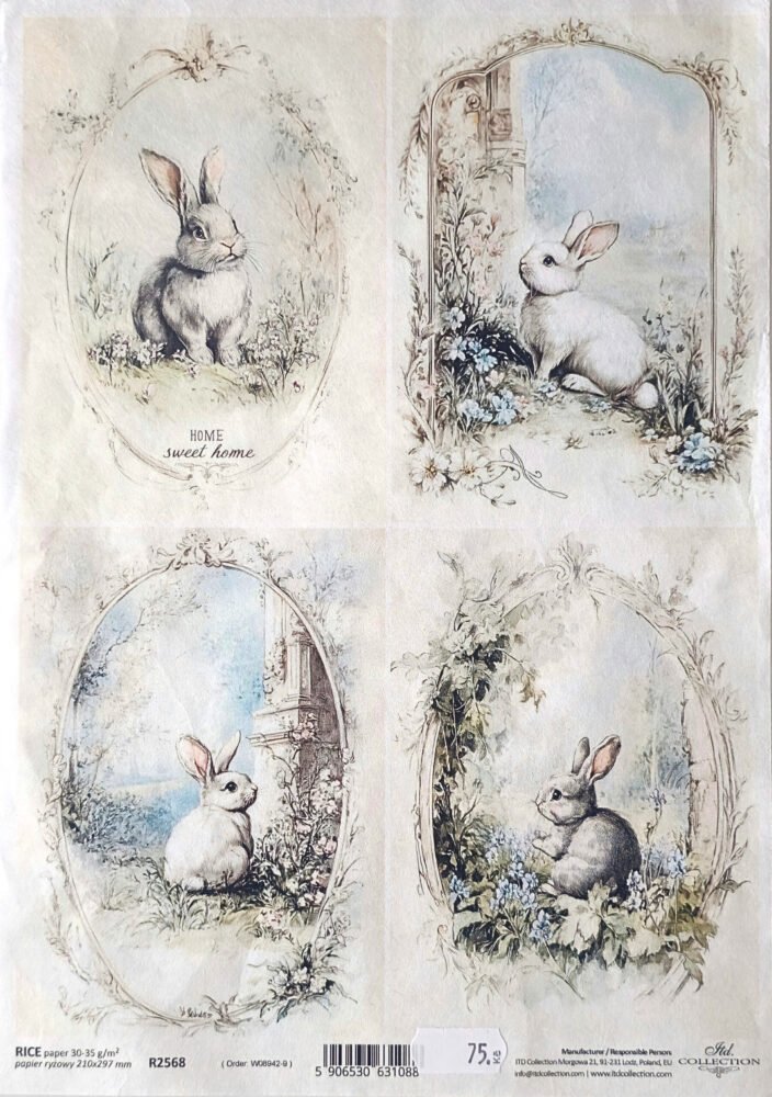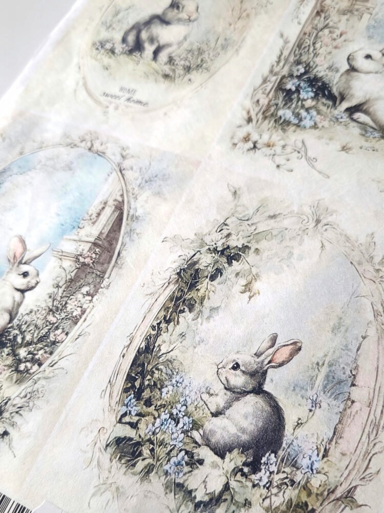 Jemný rýžový papír s veselým jarním motivem zajíčka pro techniku decoupage, koláže i další kreativní projekty. Díky své tenké, ale pevné struktuře se papír dobře přizpůsobí povrchu a po nalepení přirozeně splyne s podkladem. Motiv působí jemně a po zalakování vyniknou detaily i přirozená textura rýžových vláken.
