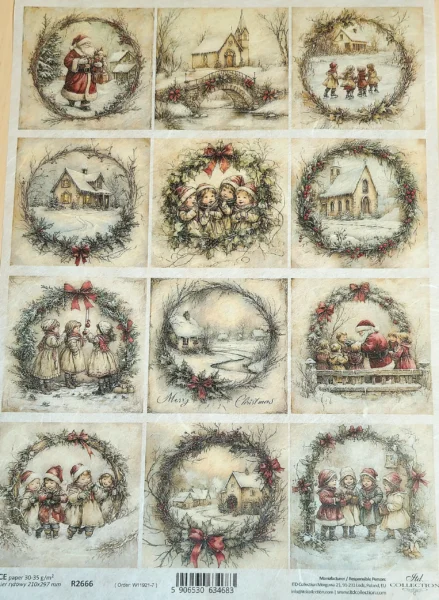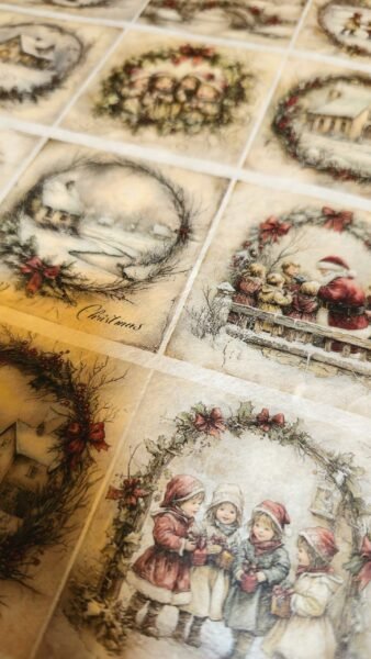 Rýžový papír na vánoční kreativní tvoření doma, například na decoupage, mixed media, scarpbooking a další. Tento papír se díky přírodnímu původu ideálně přizpůsobí různým tvarům povrchů, je vhodný pro hrany, rovné o zakřivené tvary, na dřevo, sklo, keramiku, papír, karton, svíčky a další.