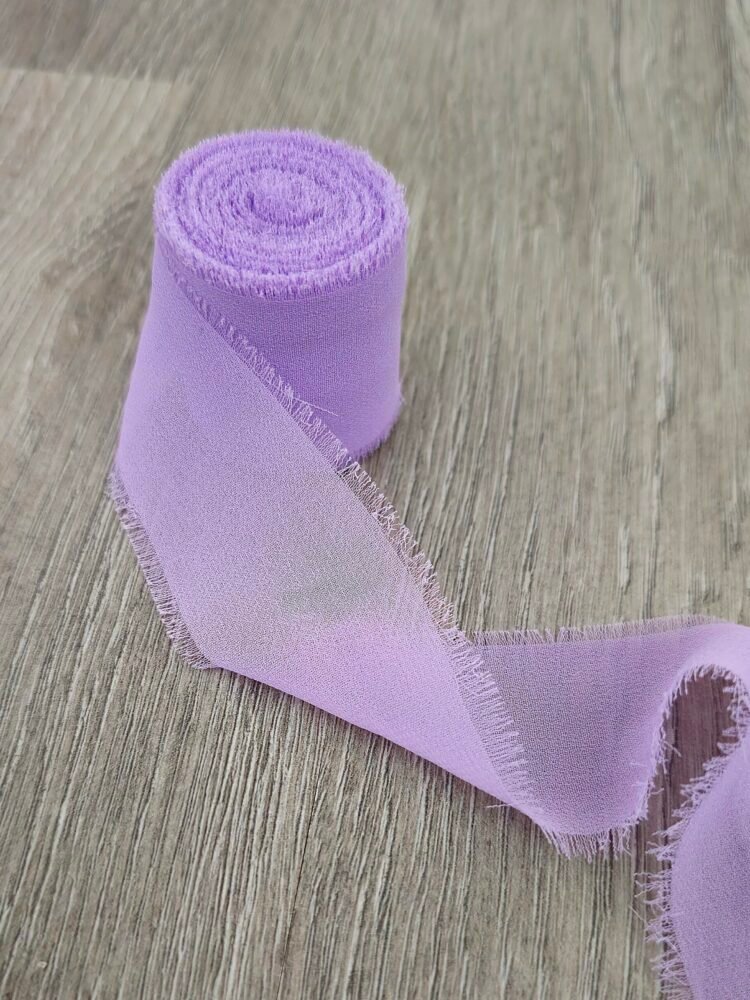 Šeříkově fialová stuha o šířce 40 mm a délce cca 5 m je jemná, příjemně hebká a matná dekorativní stuha s mírně roztřepenými okraji. Díky svému přirozenému a romantickému vzhledu je vhodná pro zdobení a kreativní tvoření.