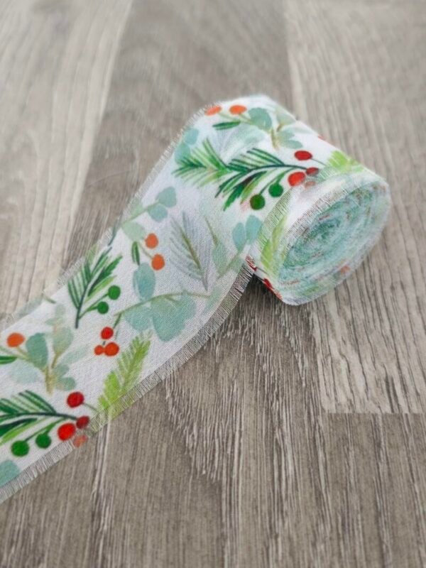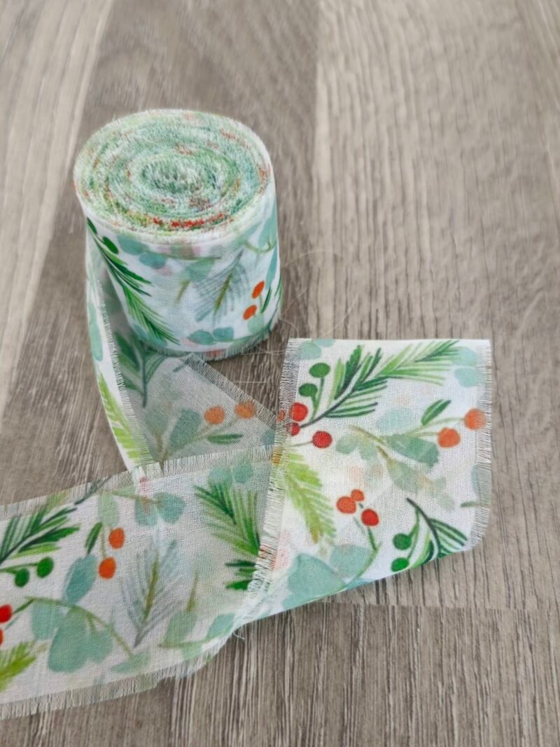 Šifonová stuha s rostlinným motivem větvičky rakytníku o šířce 40 mm a délce cca 5 m je jemná, příjemně hebká a matná dekorační stuha s mírně roztřepenými okraji. Svěží pastelově zelený odstín je ideální pro přírodní, jarní i vánoční a romantické projekty.