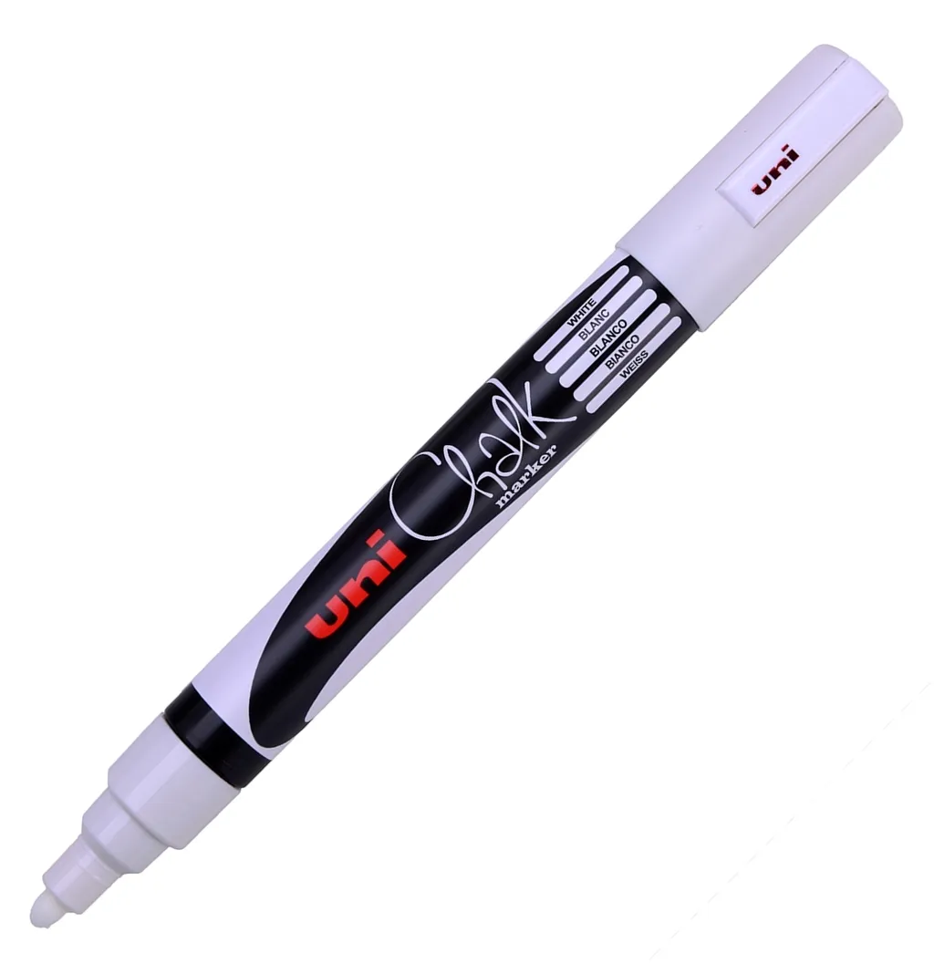 Křídový popisovač Uni Chalk Marker je ideální pro psaní, kreslení i dekorativní nápisy na hladké neporézní povrchy. Vytváří výrazné, syté bílé tahy, které jsou dobře čitelné a působí profesionálně.