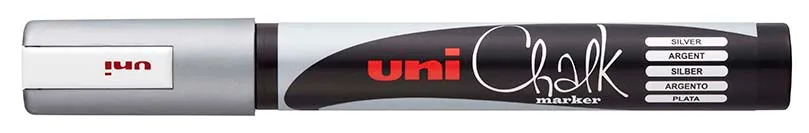 Křídový popisovač Uni Chalk Marker je ideální pro psaní, kreslení i dekorativní nápisy na hladké neporézní povrchy. Vytváří výrazné, syté stříbrné tahy, které jsou dobře čitelné a působí profesionálně.