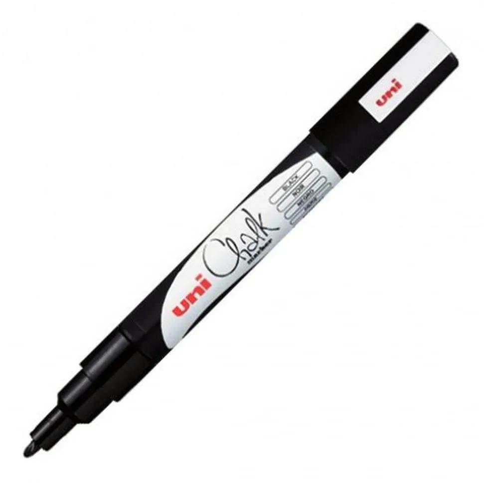 Křídový popisovač Uni Chalk Marker je ideální pro psaní, kreslení i dekorativní nápisy na hladké neporézní povrchy. Vytváří výrazné, syté černé tahy, které jsou dobře čitelné a působí profesionálně.
