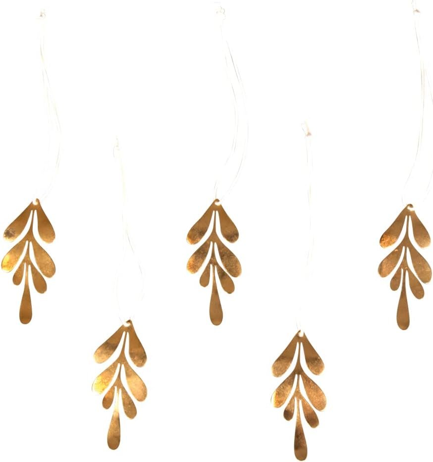 Každý lístek je zpracován z tenkého kovu v teplém zlatém odstínu, který zachytává světlo a vytváří jemný třpytivý efekt. Díky praktickému očku je snadno zavěsíte samostatně nebo zakomponujete do složitějších dekorací.
